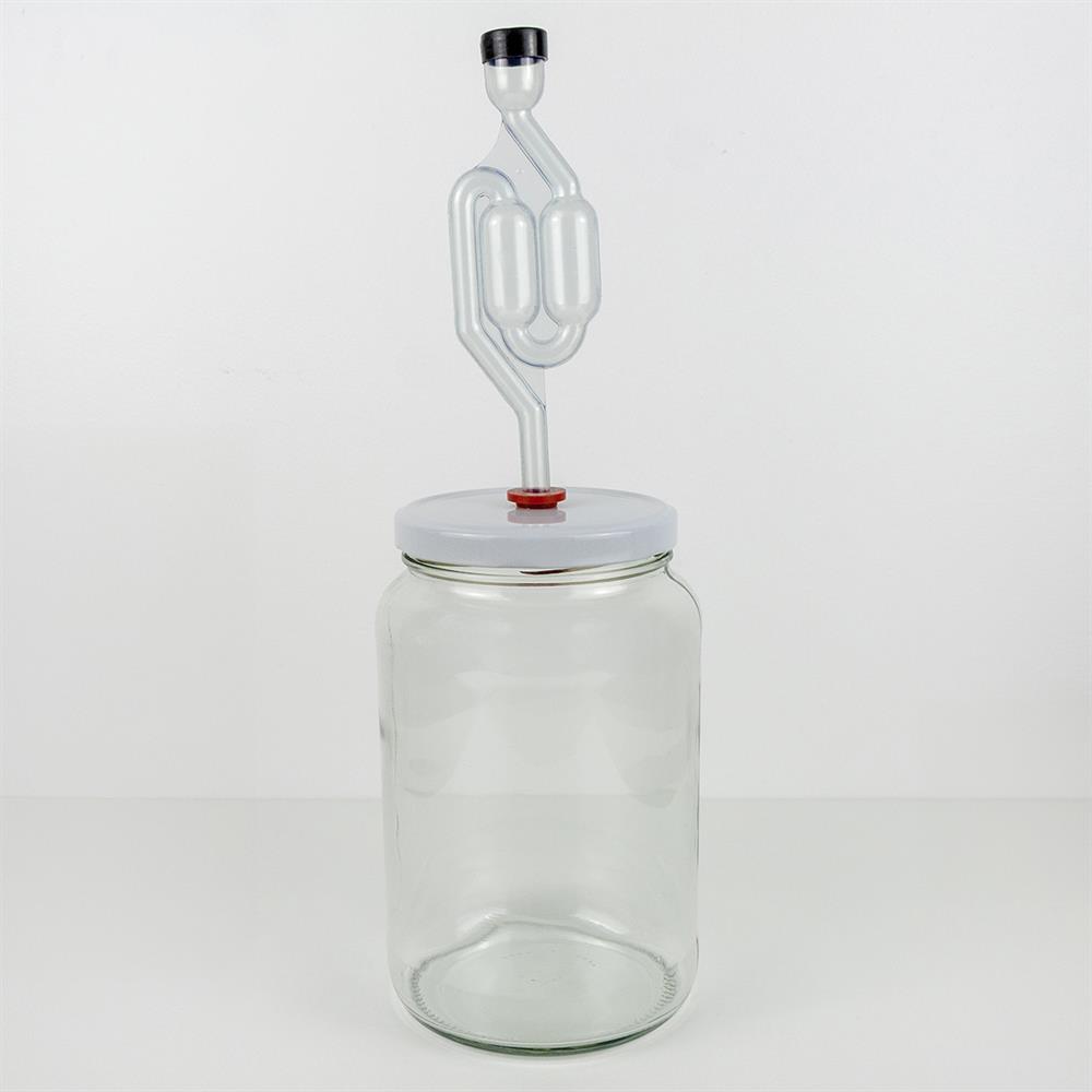 Fermenteringsglas komplet med hvidt skruelåg, hul til tyl, tyl og gærrør, 1,7 liter