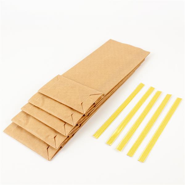 Sæt med 5 praktiske små papirposer og lukkeclips.