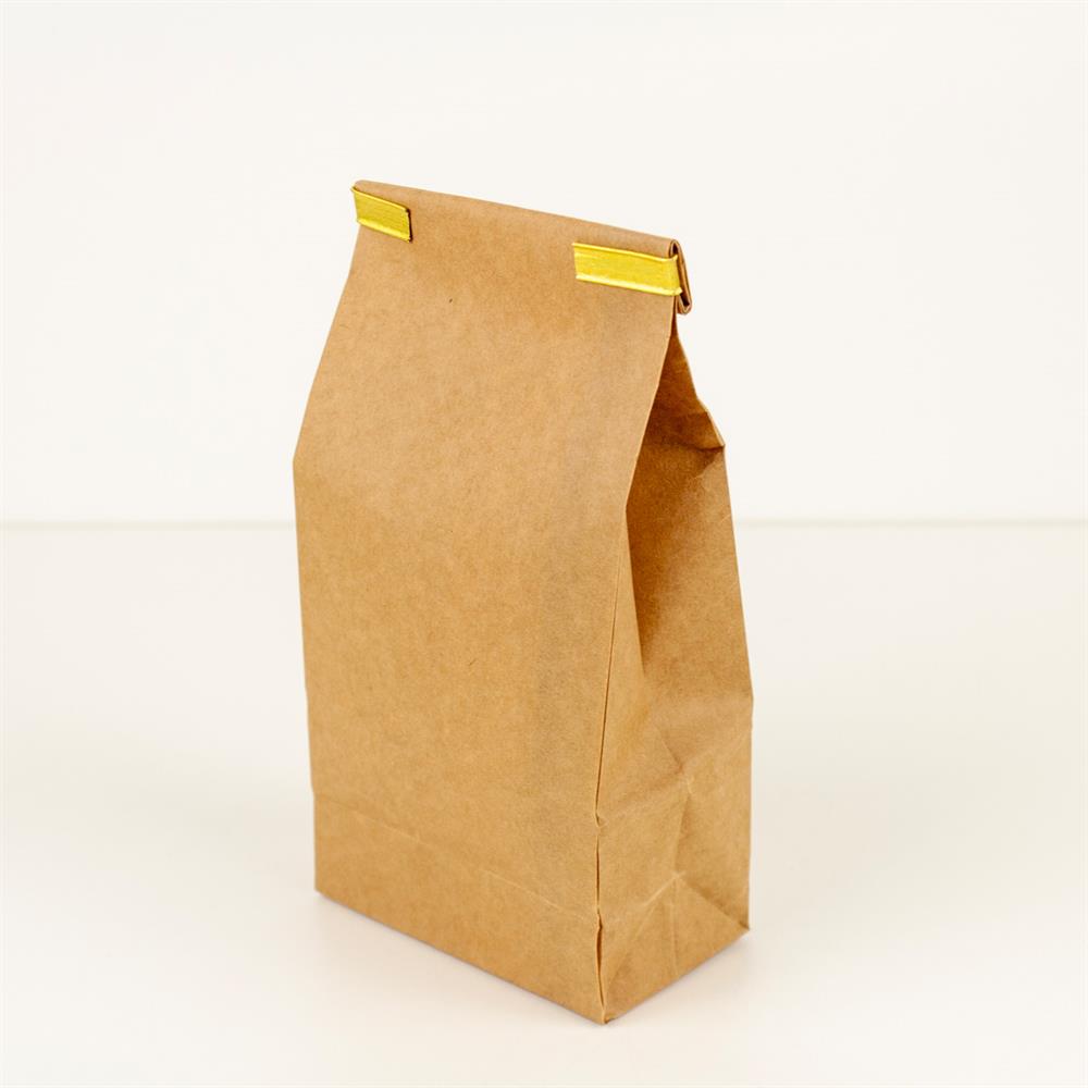 Posen er fremstillet af kraftigt brunt kraftpapir med en inderside af madgodkendt papir, som beskytter indholdet og hjælper med at bevare aroma og friskhed. Leveres med en guldfarvet poselukker, så indholdet nemt og sikkert kan lukkes til igen.