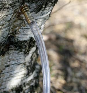 Efter at hullet er boret i birketræet kan denne tappestuds bankes ind i træet med et par lette slag med en hammer. Rillerne gør at studsen ikke har problemer med at slutte tæt. Samtidig bevirker rillerne i den anden ende at slangen nemt kan sættes forsvarligt fast.