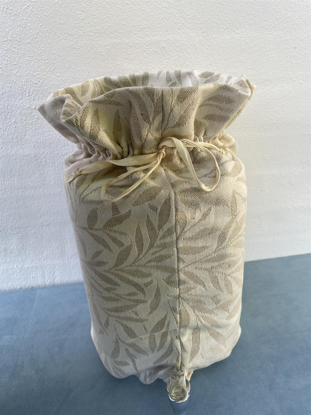 Vineddikekrukke af glas med tappehane, overtræk med bladmotiv, 8 liter